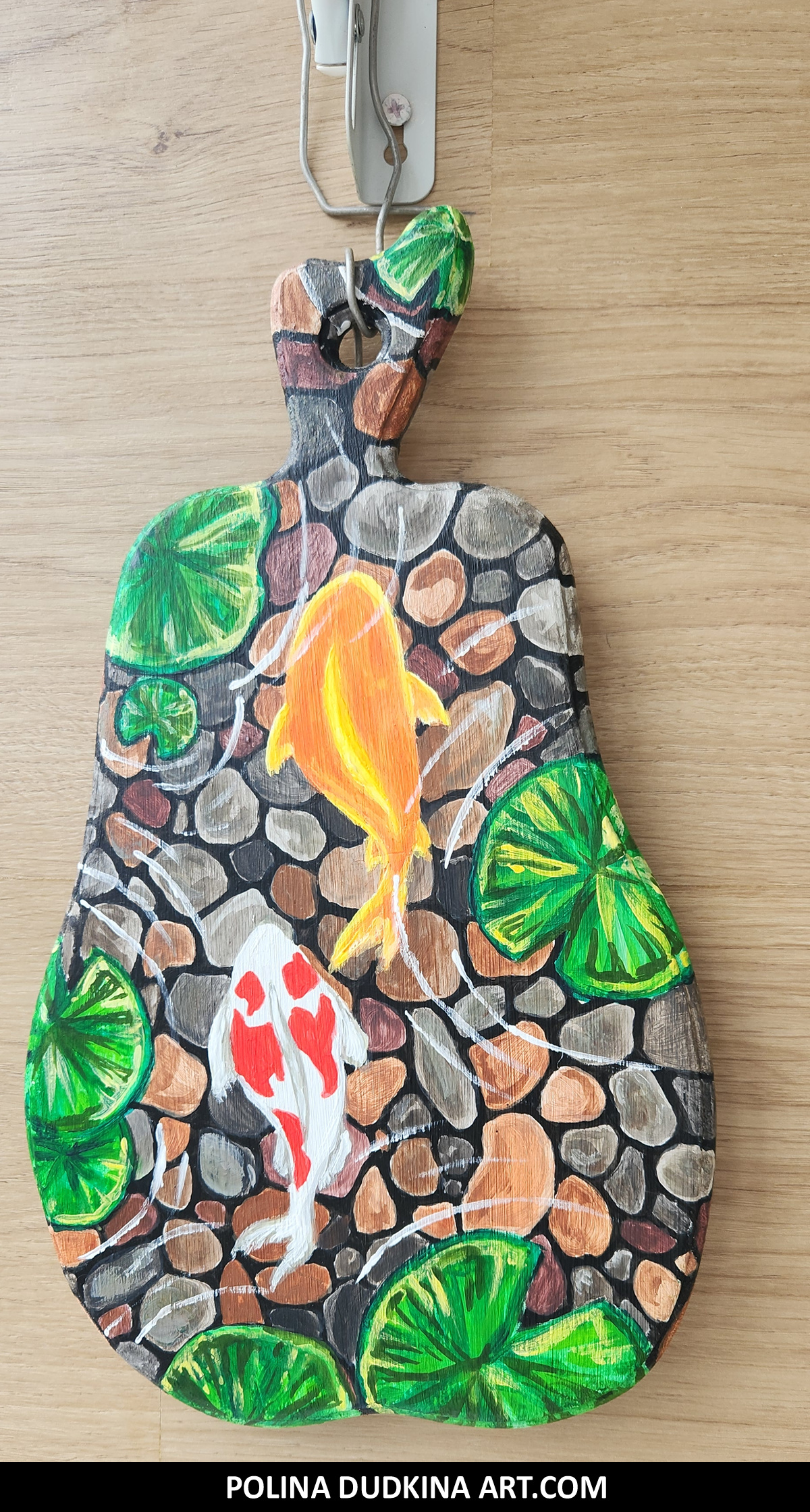painting on a wooden serving board by Polina Dudkina featuring